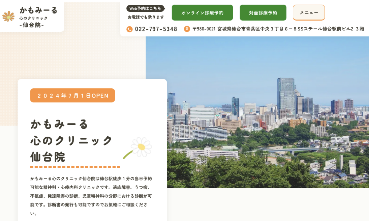 仙台で発達障害の相談を検討している方は、かもみーる心のクリニック仙台院でも対応しています。
